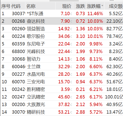 消费电子板块午后爆发